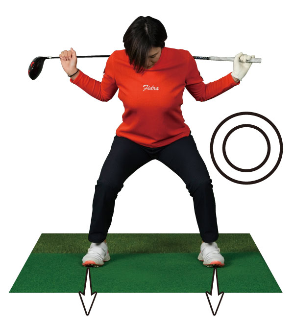 ツマ先を開いてしまうと、踏み込んだときに下半身の力が逃げてしまう。スクワットするときもツマ先を真っすぐにした方が力が入りやすいと思うのですが、ゴルフスイングでもその感覚は同じです。