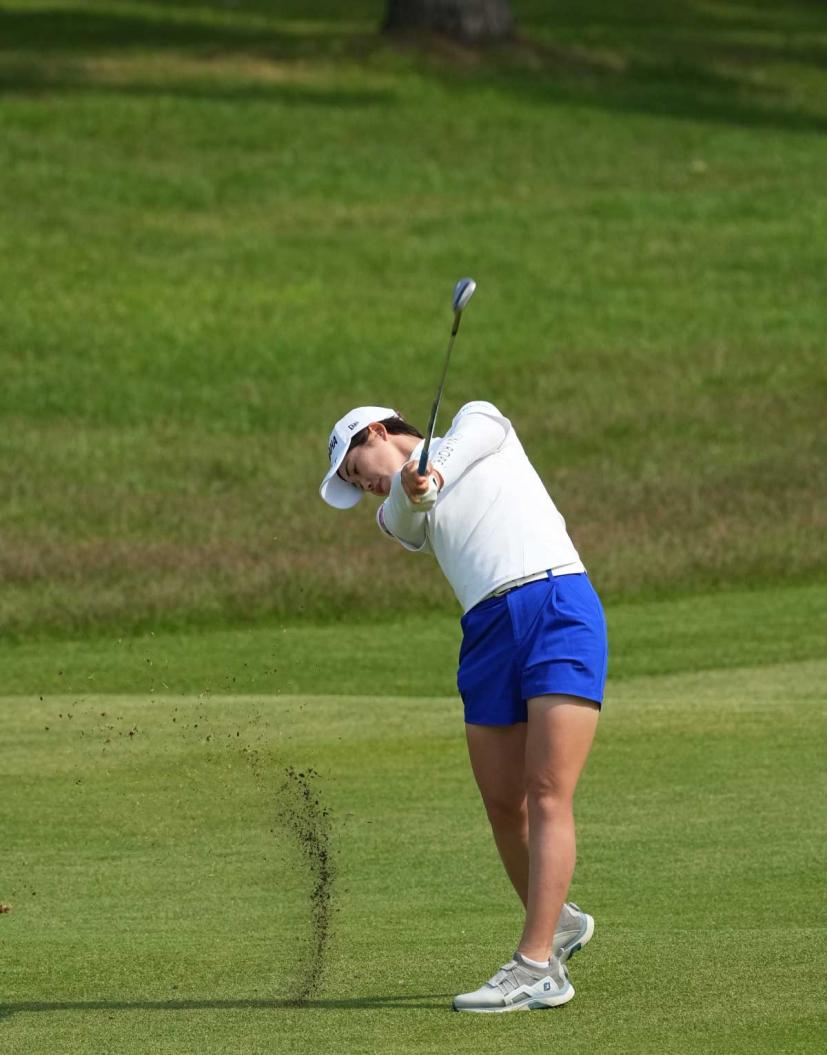 植竹希望のウェッジスイング(斜め後方)|インパクト