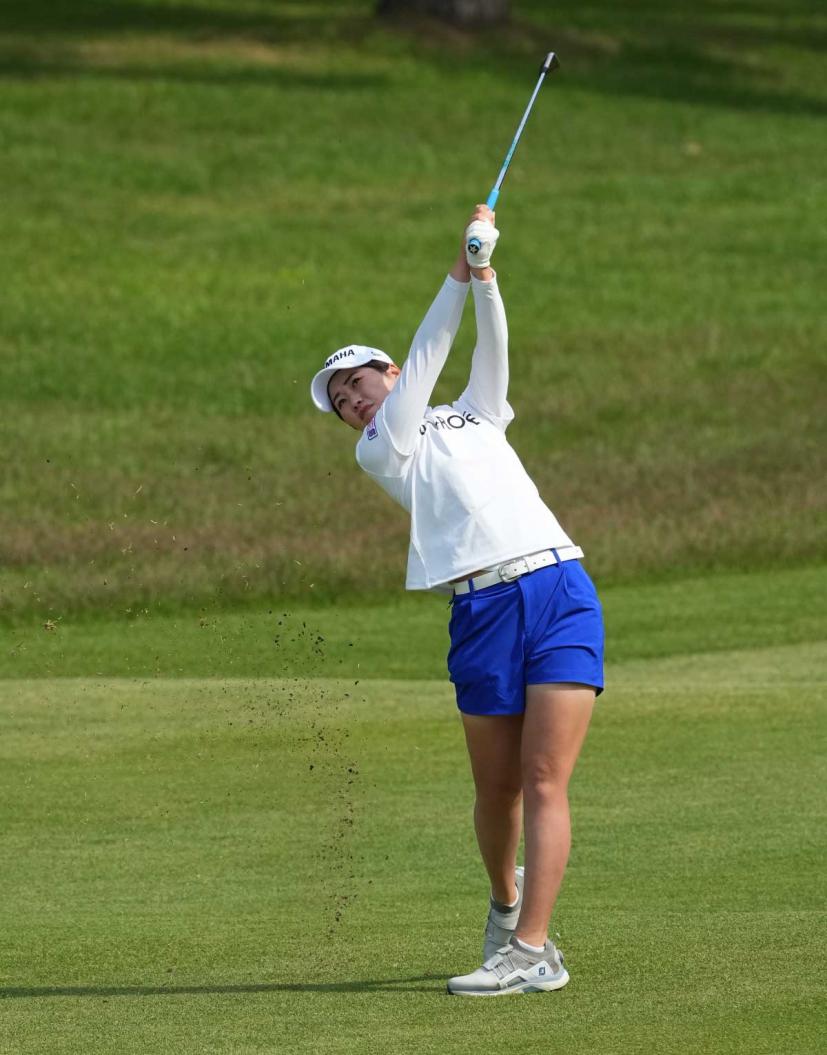 植竹希望のウェッジスイング(斜め後方)|フィニッシュ