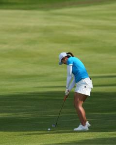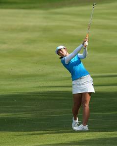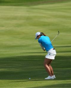 渡邉彩香のアイアンスイング(斜め前方)|インパクト