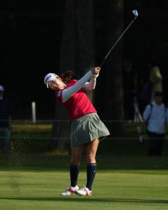 堀琴音のアイアンスイング(斜め前方)|フォロー①