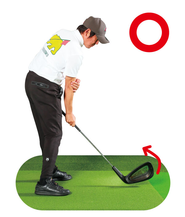トップでフェースが開くとつかまらなくなるイメージだが、ヒールでリードするダウンならフェースターンも早く始まり、リリースに間に合う。