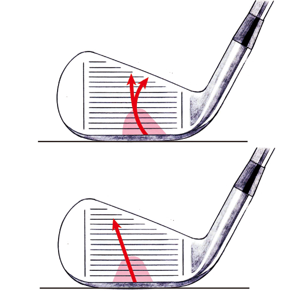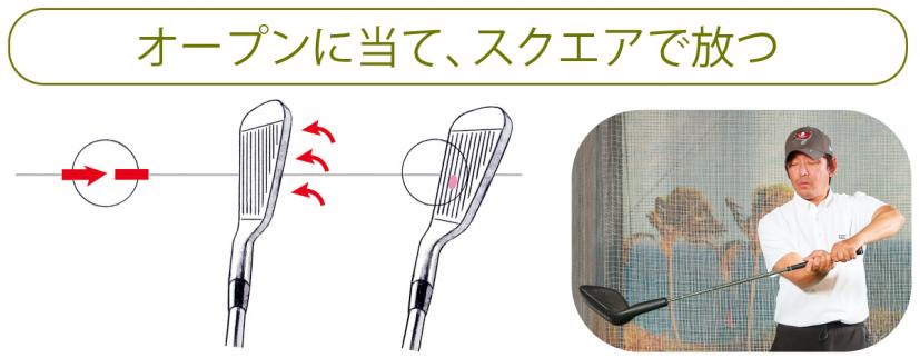 森プロ「アイアンはヘッド重心の下が打点エリア。フェースターンしないと、打球は右上に逸れてしまいます(下)。