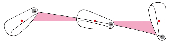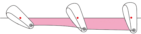 フェースの開閉を抑えるとヘッド重心のプレーンとヒールのプレーンは平行に動くことになる。