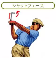 シャットフェースからヘッドを走らせると、フェースが開く方向にシャフトに大きな負荷がかかる。