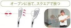オススメは、わずかにオープンフェースで当てながらドローを打つドリル。ロフトの大きいものほどオープン度合いを大きくし、ロフトの小さいものほどターンを強めないとドローになりません。たぐり動作のアレンジを実感できます」