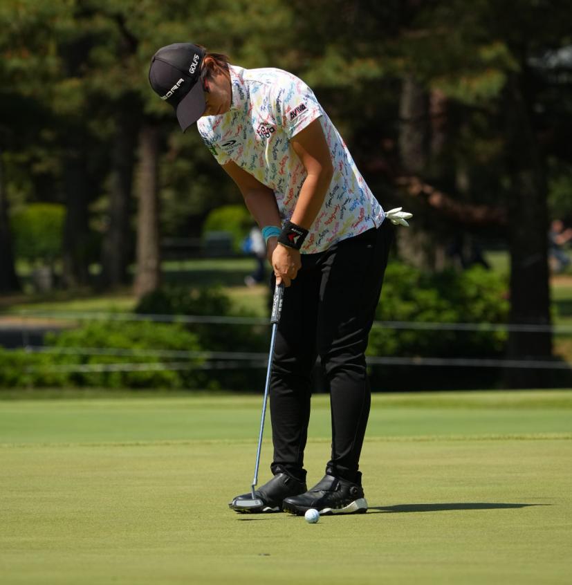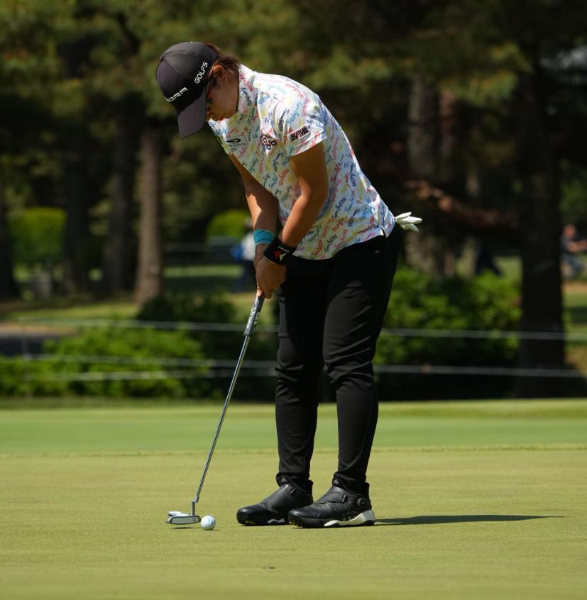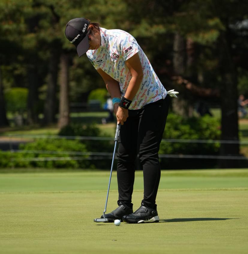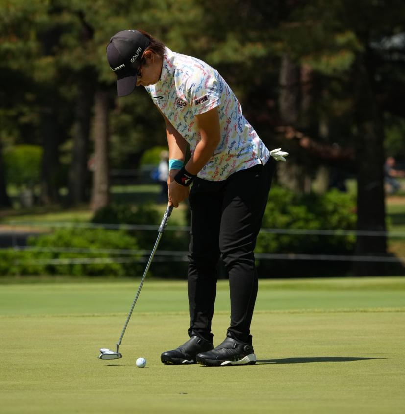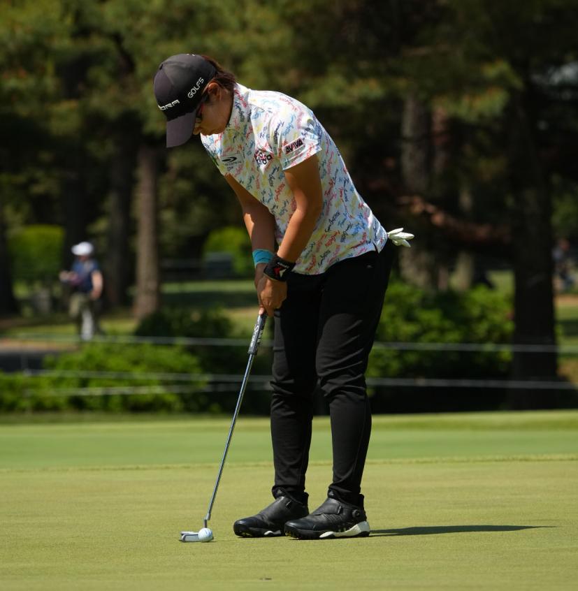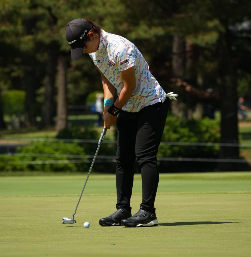 穴井詩パッティングストローク(斜め前方)|フォロー①