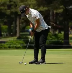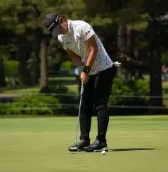 穴井詩パッティングストローク(斜め前方)|フィニッシュ
