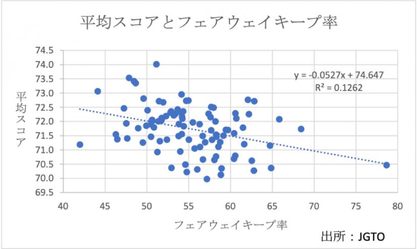 フェアウェイキープ率が平均スコアに与える影響が大きくないとしたら、フェアウェイキープ率の高さをそれほど気にしても意味がないということになります。
