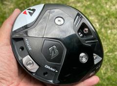 構えてみると、今までのブリヂストンの丸い顔ですね。僕はこういう形状のほうがつかまりそうな感じがして好きです。あまり左を向いている感じはないですね。クラウンはカーボンになっているので、軽量化されているということでしょうか。もしかしたら裏側になにか仕掛けがしてあったりするかもしれませんが、ちょっとそれはわかりません。