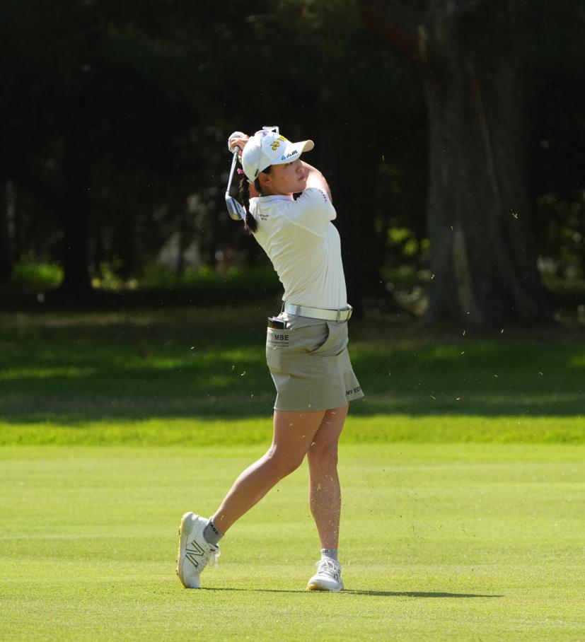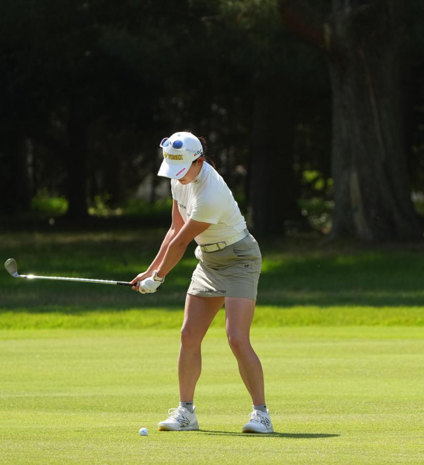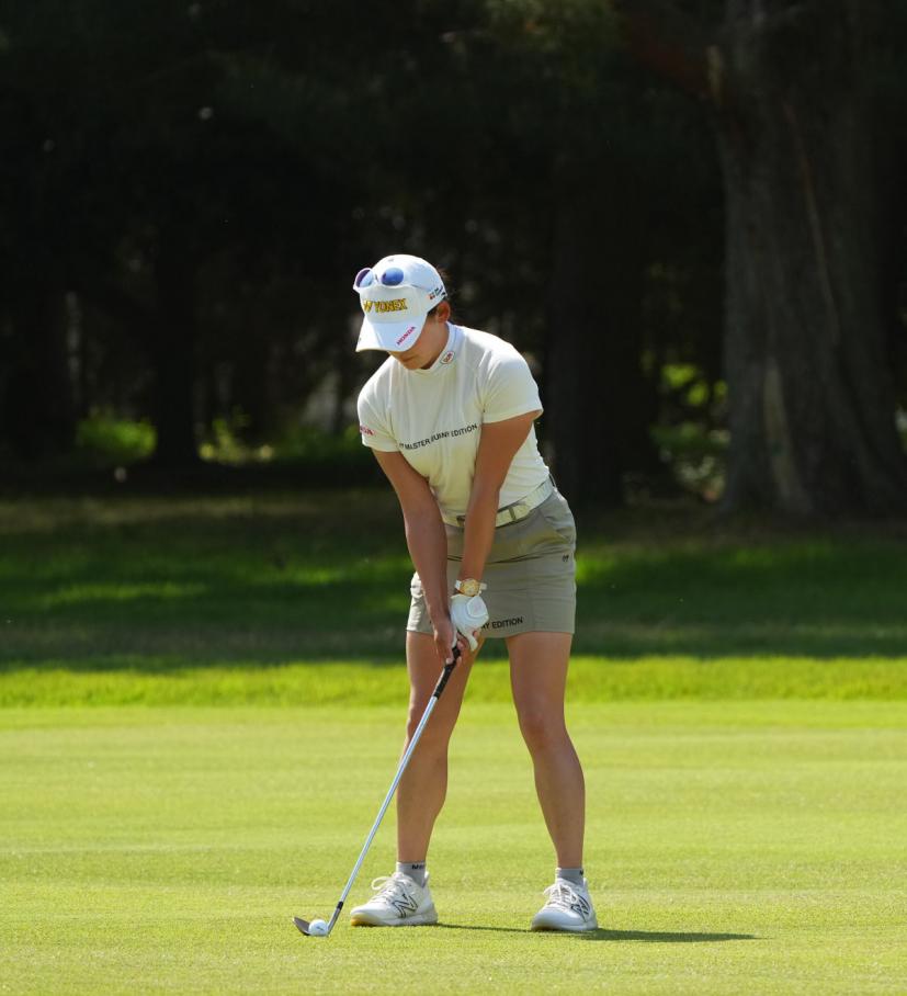 いわい・ちさと(Honda) 2002年7月5日生まれ。2021年のプロテストに合格。同年のプロテストに合格した双子の姉 ・岩井明愛と、”岩井ツインズ”として人気上昇中。2022年「NEC軽井沢72ゴルフトーナメント」で初優勝、翌週の「CATレディース」でも優勝し、史上3人目の初優勝から2週連続優勝を飾った。現在ツアー4勝目。