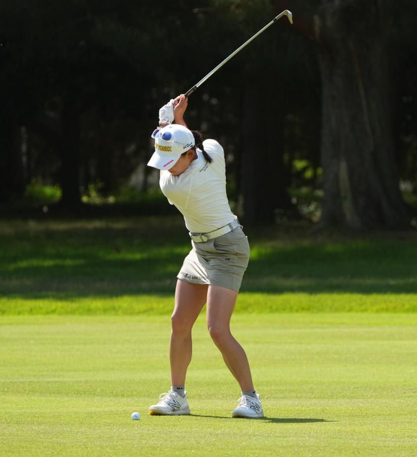 岩井千怜のアイアンスイング(正面)|フォロー①