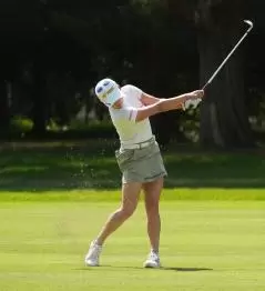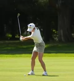 岩井千怜のアイアンスイング(正面)|フィニッシュ