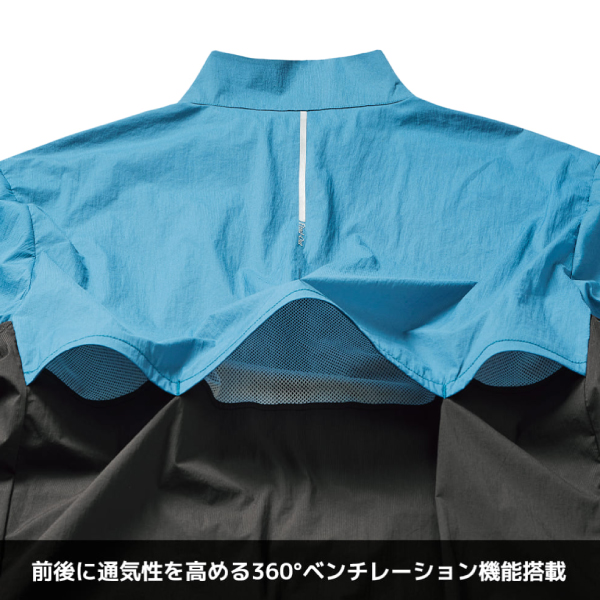 腹部&背中部に通気性を高めるためにメッシュ生地にて、ベンチレーション機能を搭載。