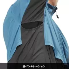 蒸れやすい脇部分、ヒジにもベンチレーション機能を施してある。