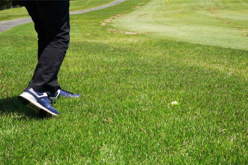 冬に比べてただ生い茂っているだけでなく、葉っぱに勢いがあって、しかも水分をたっぷり含んでいる夏芝は、思った以上に抵抗が大きいもの。「それほど深くないので大丈夫だろう」と思っていても、ヘッドが上手く抜けてくれないことがよくあります。それほど見た目の感覚と実際に打った時のギャップが大きくなるのが、夏芝のラフの特徴なのです。