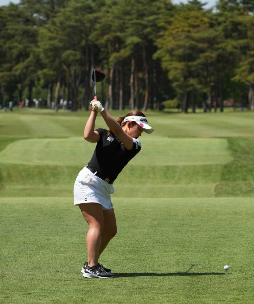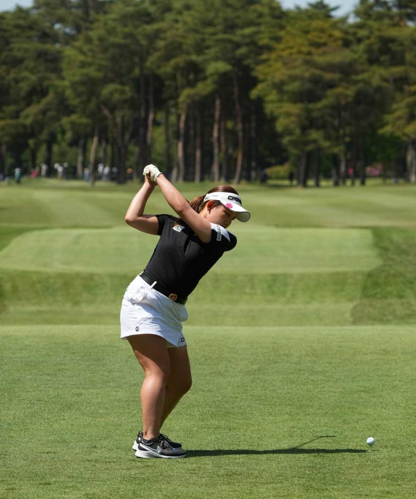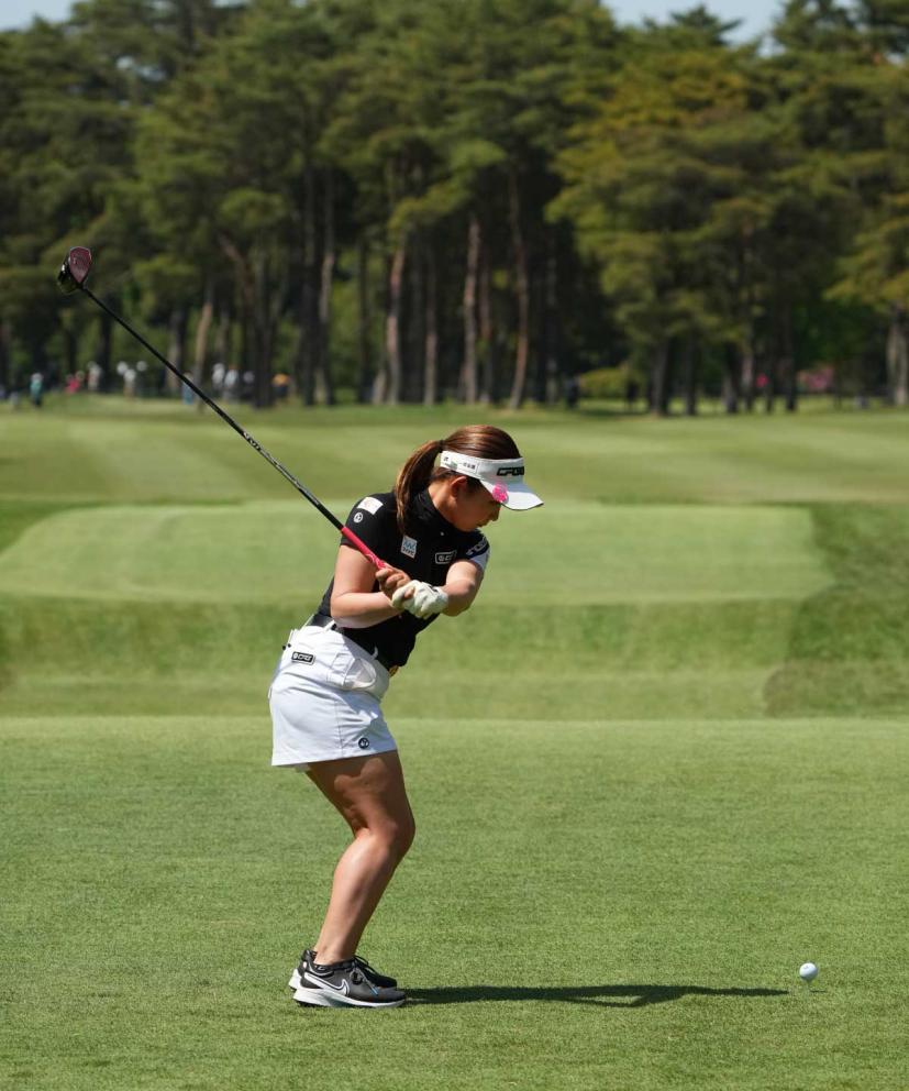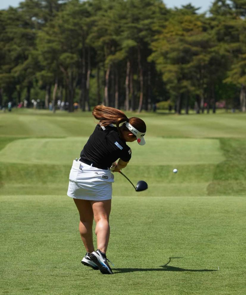 吉本ひかるのドライバースイング(後方)|フォロー①