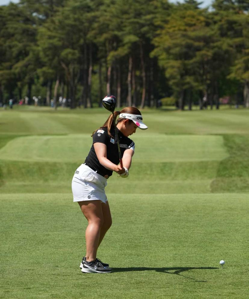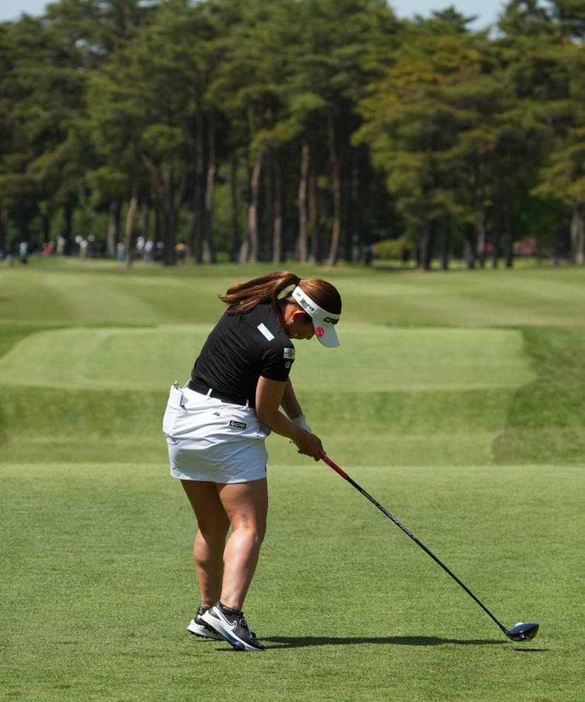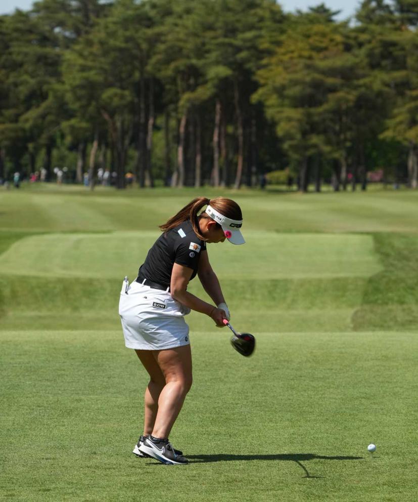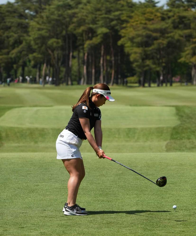 吉本ひかるのドライバースイング(後方)|フォロー①