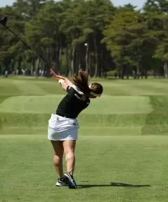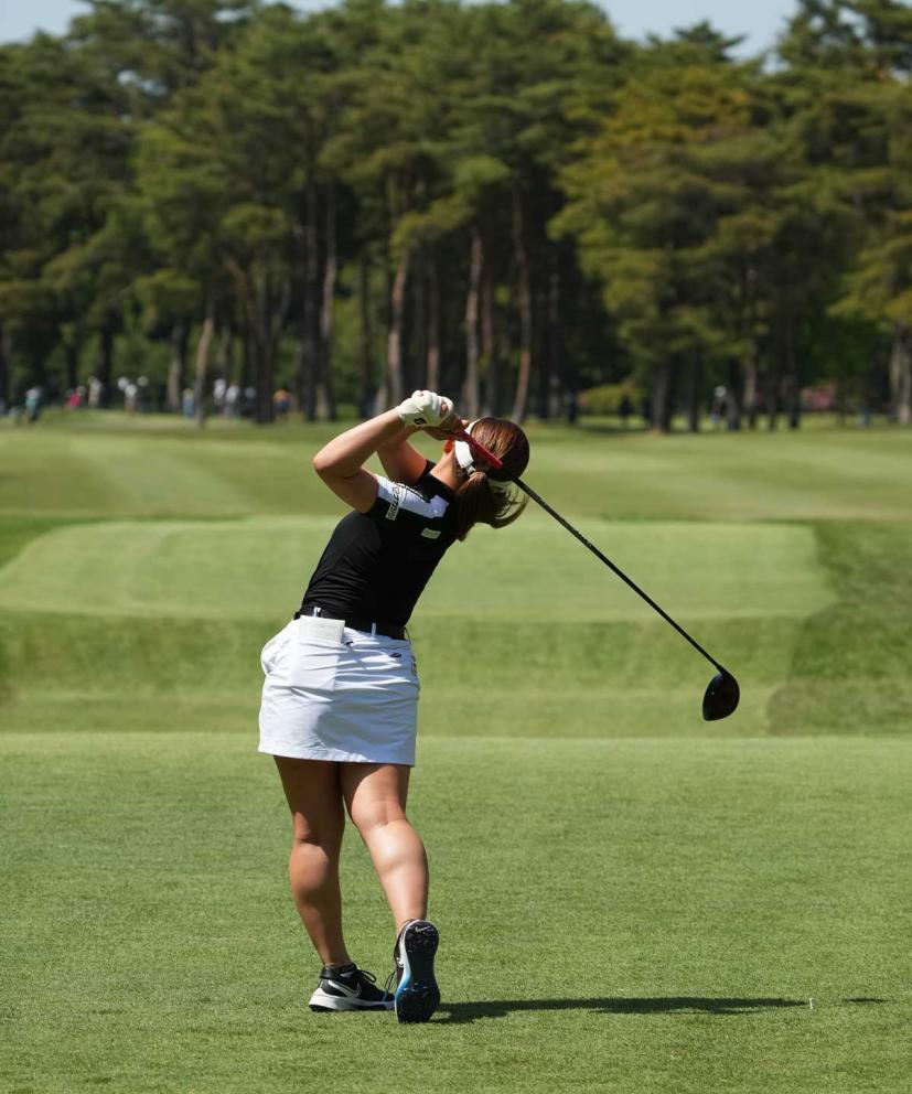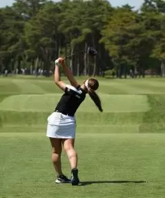 吉本ひかるのドライバースイング(後方)|フィニッシュ