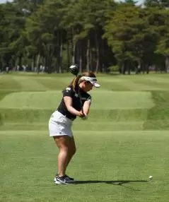 吉本ひかるのドライバースイング(後方)|フォロー②