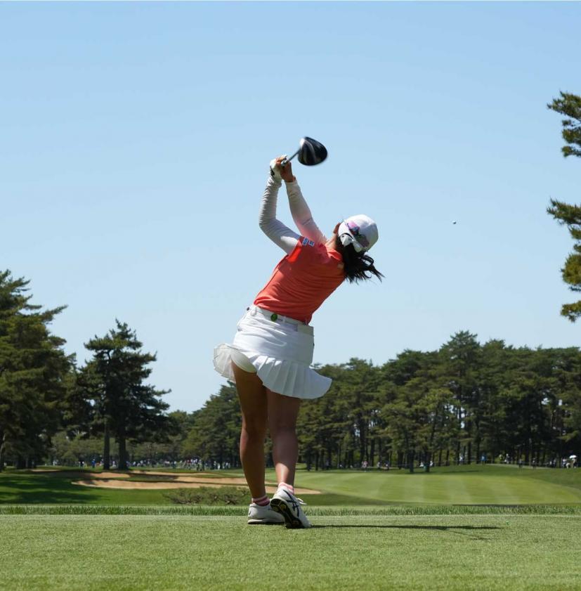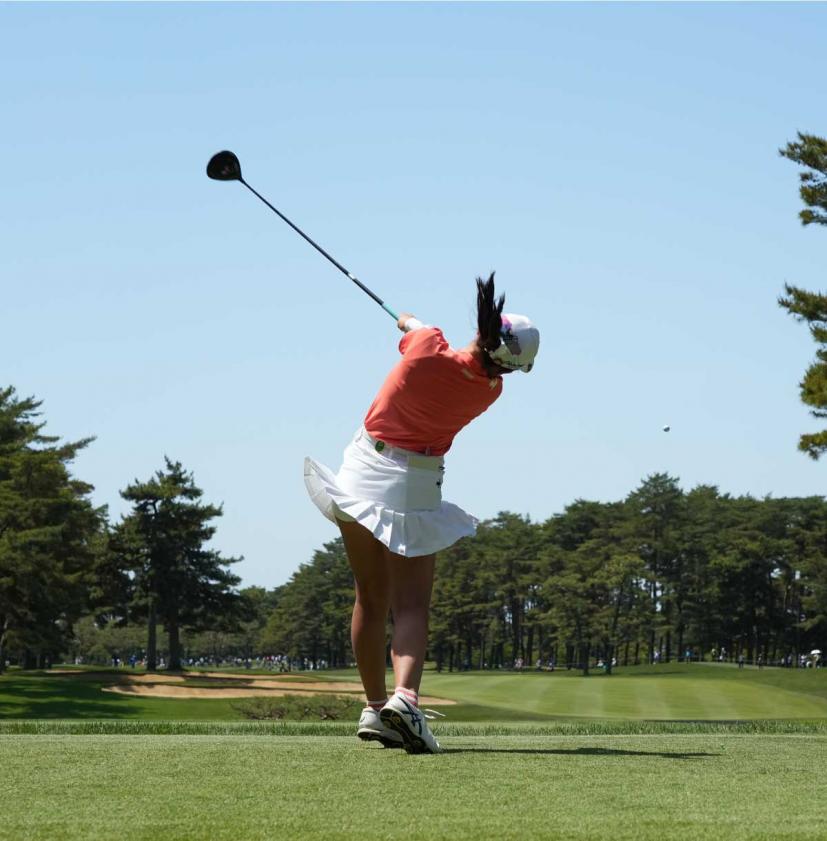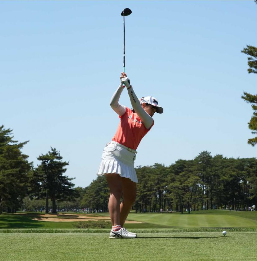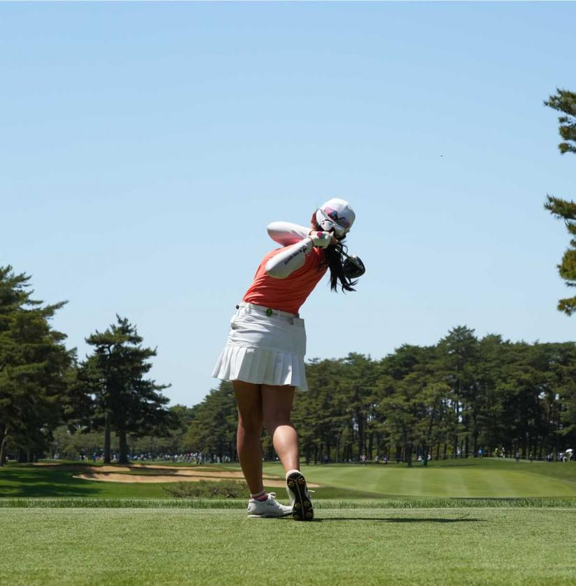 菅沼菜々のドライバースイング(後方)|フォロー①