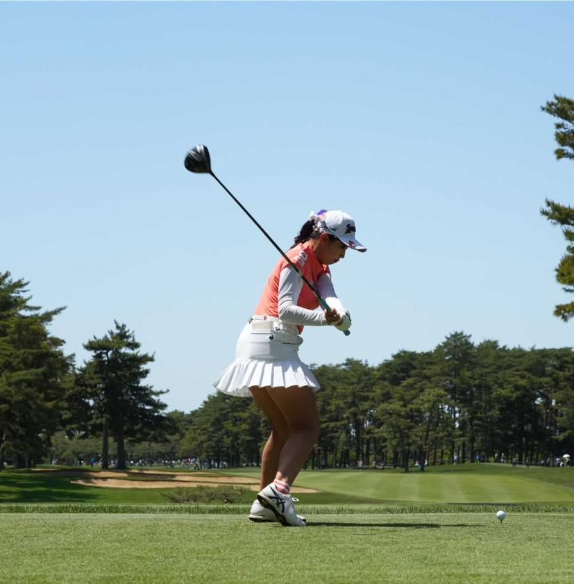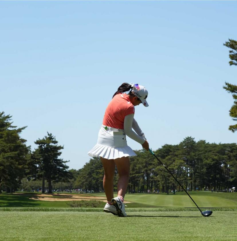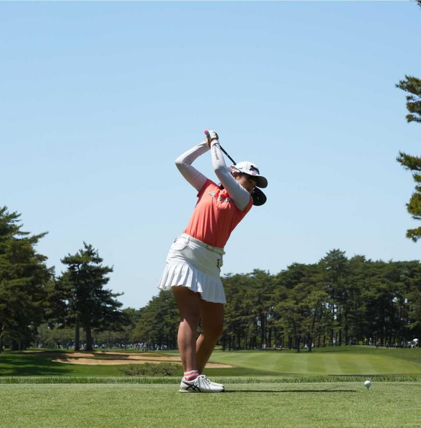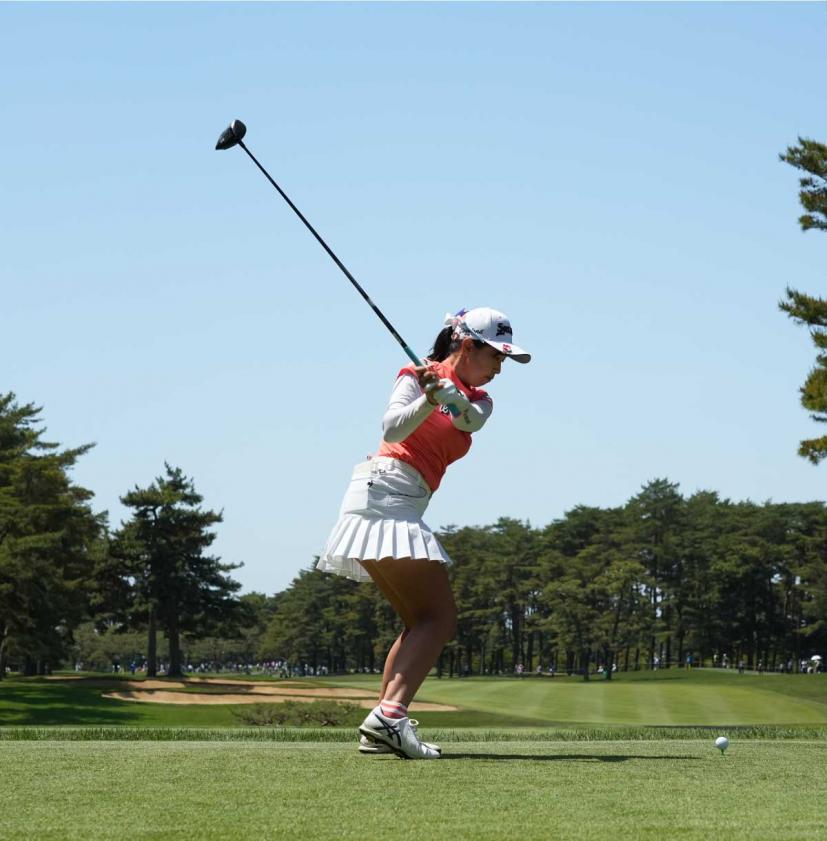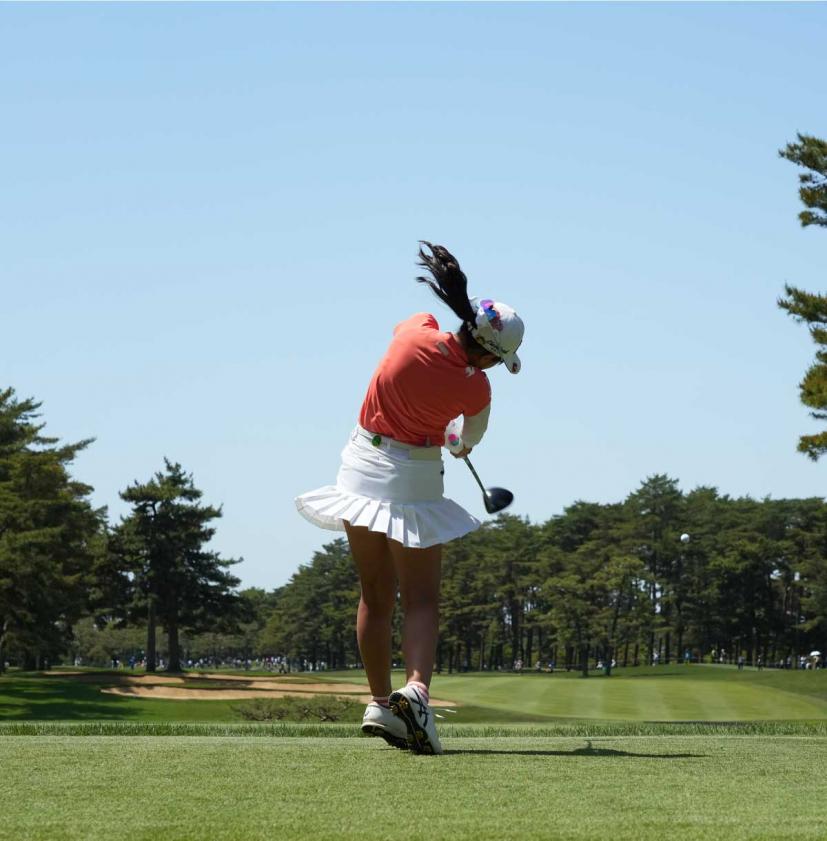 菅沼菜々のドライバースイング(後方)|フォロー①