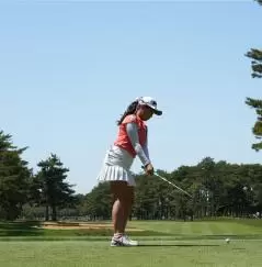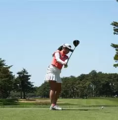 菅沼菜々のドライバースイング(後方)|フィニッシュ