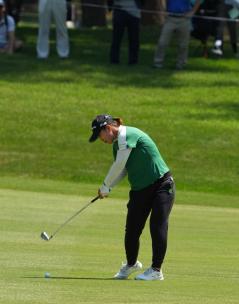 西郷真央のアイアンスイング(斜め前方)|フォロー①