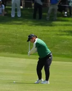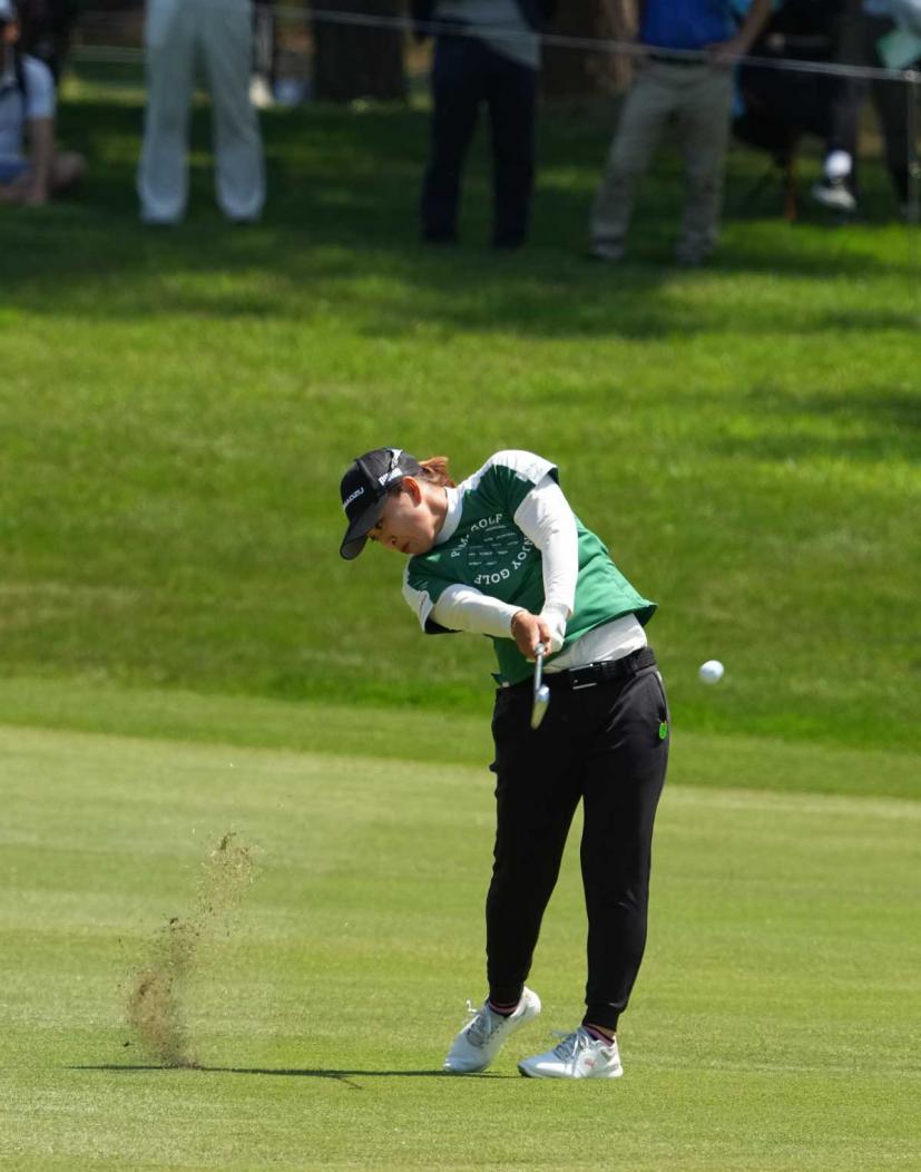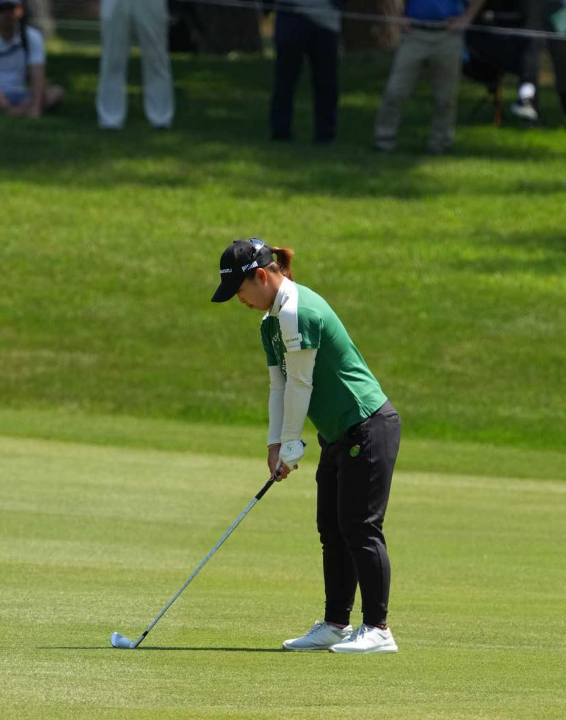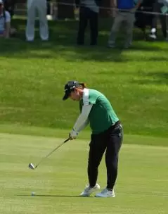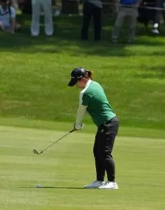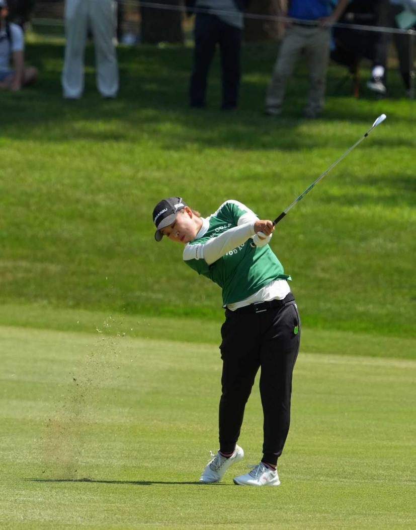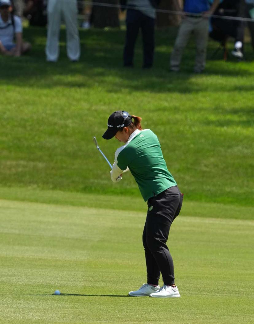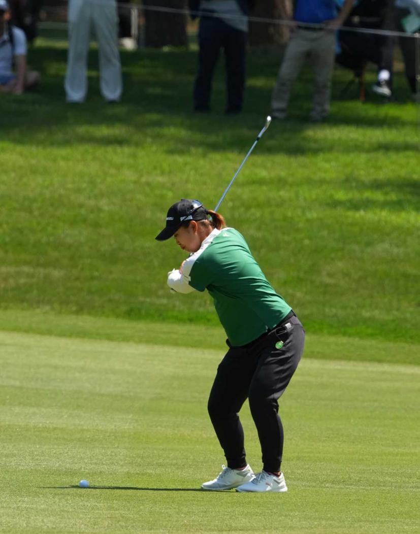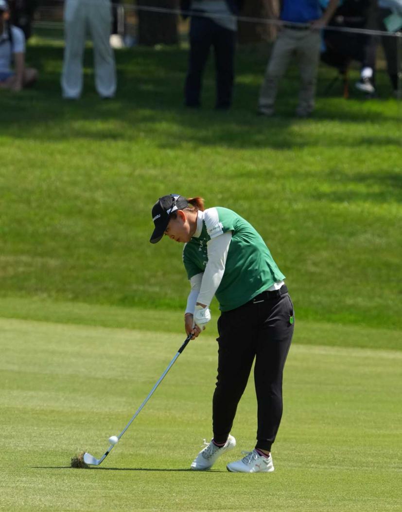 西郷真央のアイアンスイング(斜め前方)|インパクト