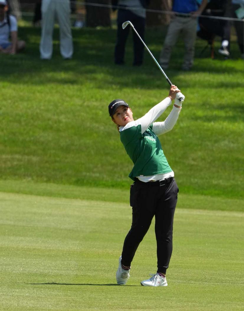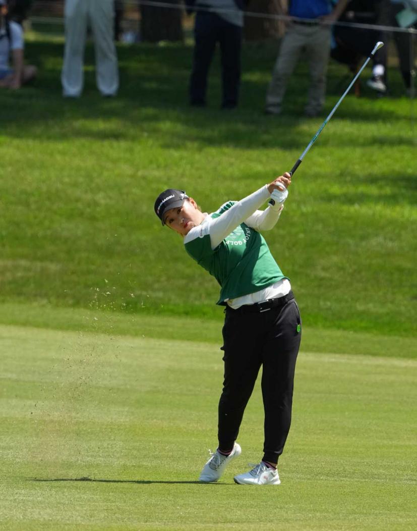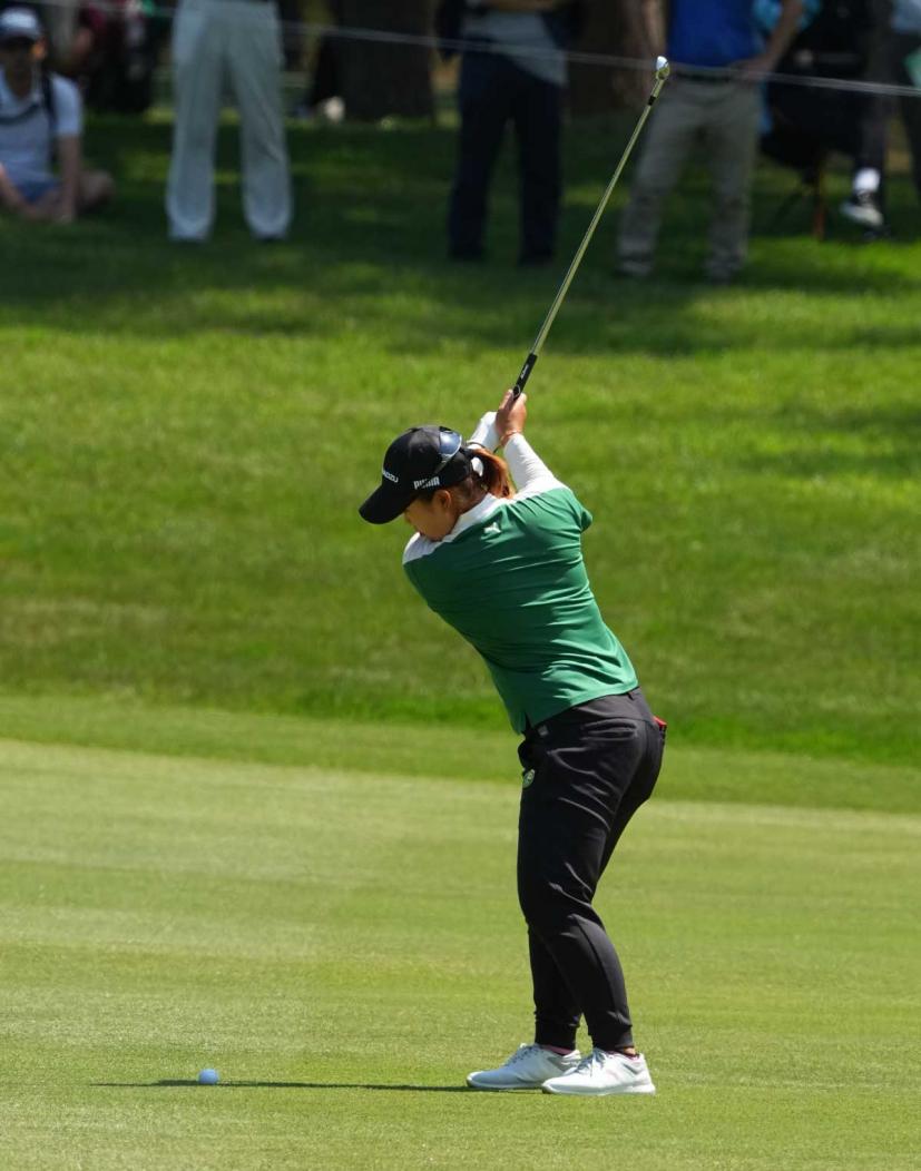 西郷真央のアイアンスイング(斜め前方)|フォロー①