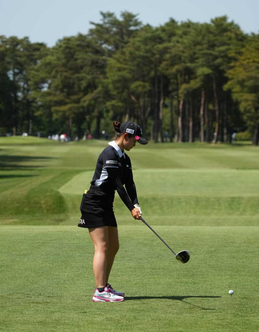 川﨑春花のドライバースイング(後方)|アドレス