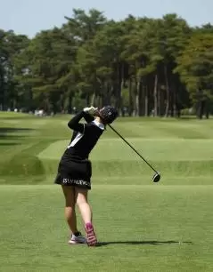 川﨑春花のドライバースイング(後方)|フォロー①