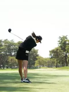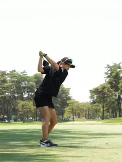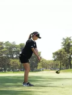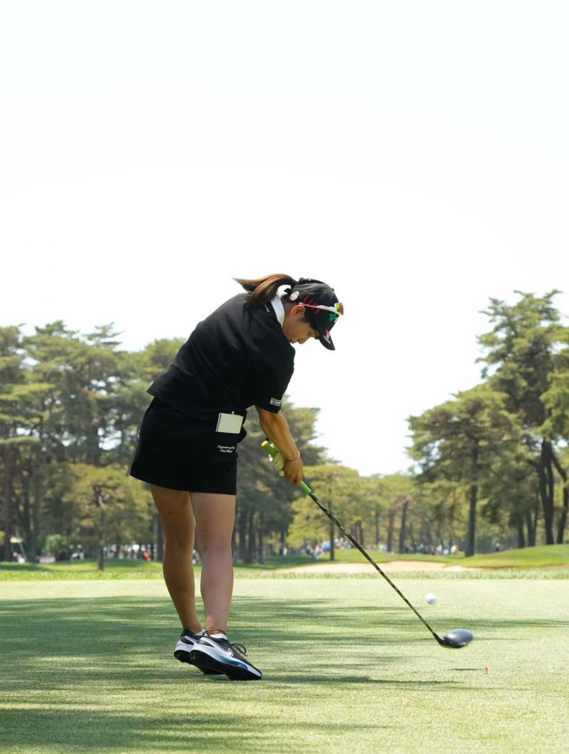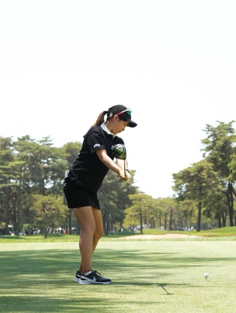 田辺ひかりのドライバースイング(後方)|フォロー①