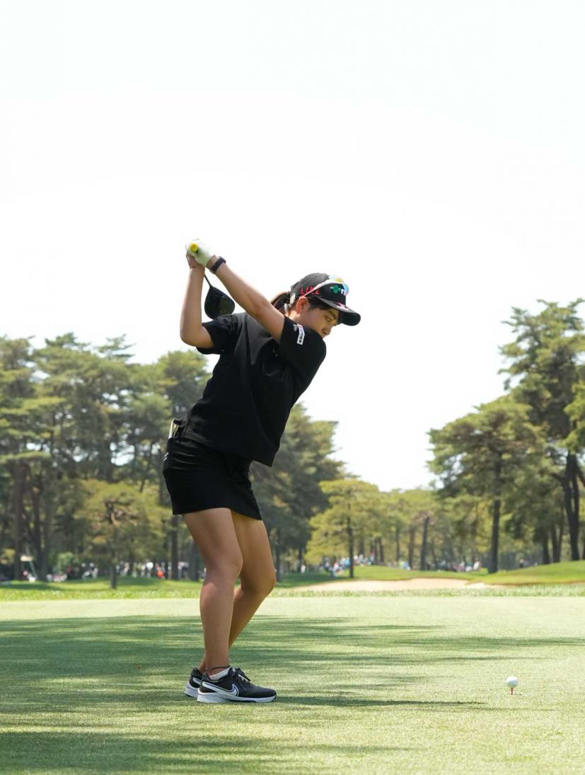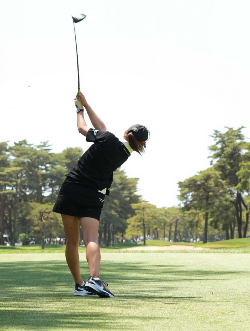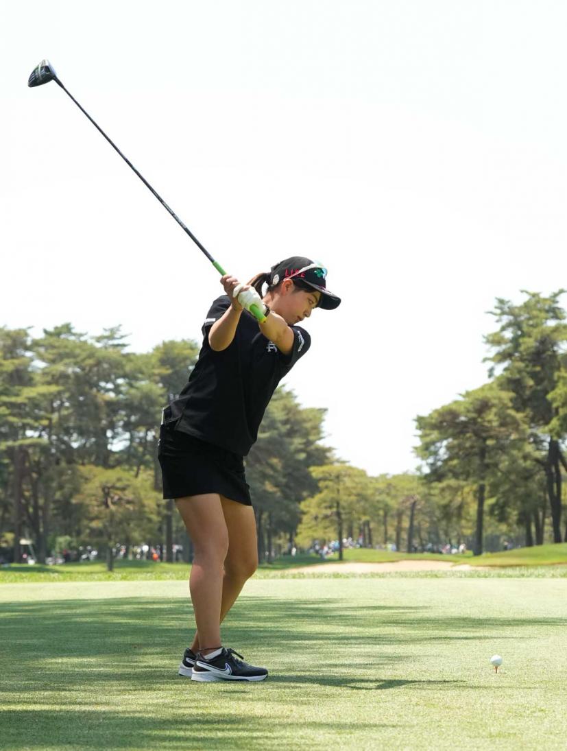 田辺ひかりのドライバースイング(後方)|フォロー②