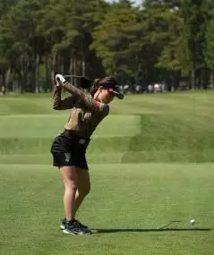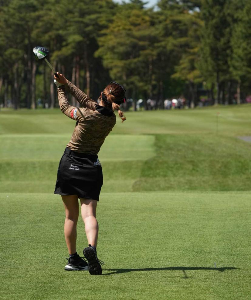木村彩子のドライバースイング(後方)|フィニッシュ