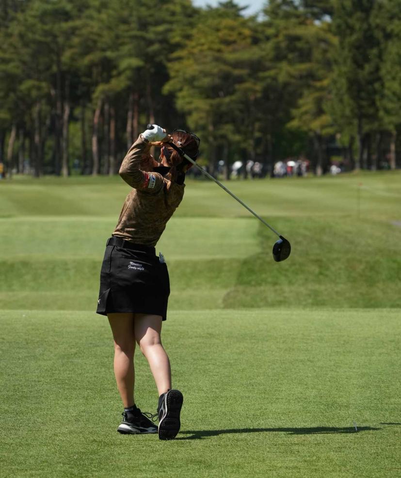 木村彩子のドライバースイング(後方)|フォロー①