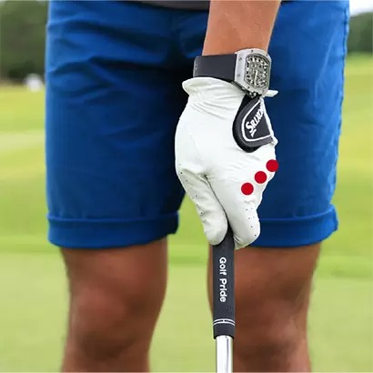 ゴルファーの皆さんもよくご存知のように、グリップは左手から握ります。右手よりもカラダに近づけて持つ左手を先に握ることで安定したグリップが作りやすいからです。