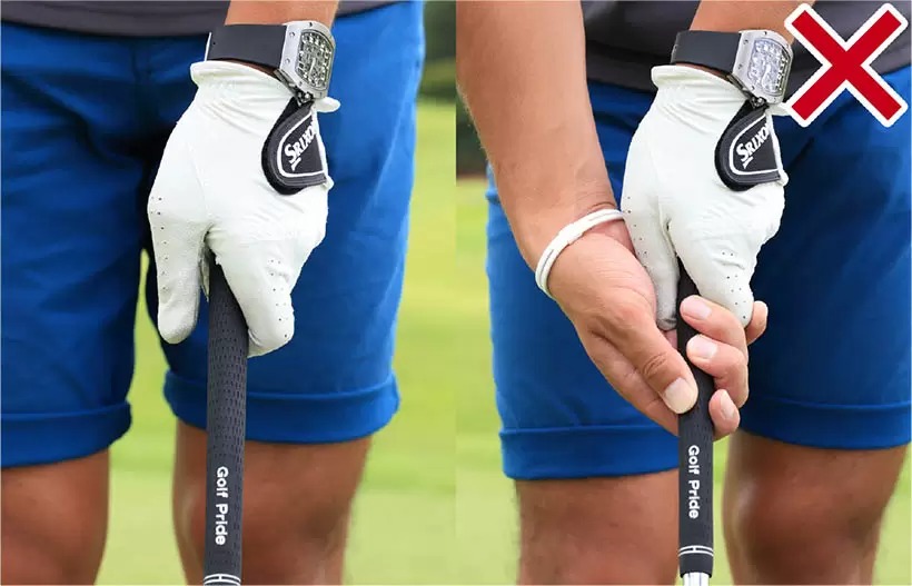 左手のナックルが3つ見えるまでかぶせて、右手のヒラで左手親指を包むように握ろう。