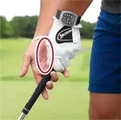 このフィット感をキープしてスイングすればグッドショットの確率がアップします。クラブを短く持っても、手のヒラでグリップを握ってしまうとグリップエンドを固定できず、左手のグリップが緩んでしまいます。緩まないようにしようと思うから、左手に余分な力が入ってしまうわけです。