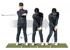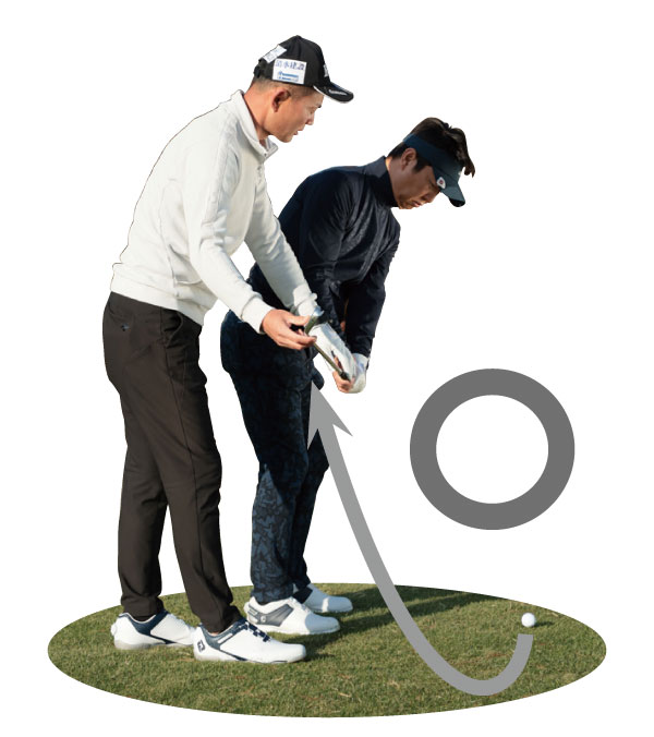 (右)イン・トゥ・インに動かせばクラブと体の距離が変わらずスクエアに当てられる。