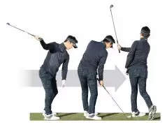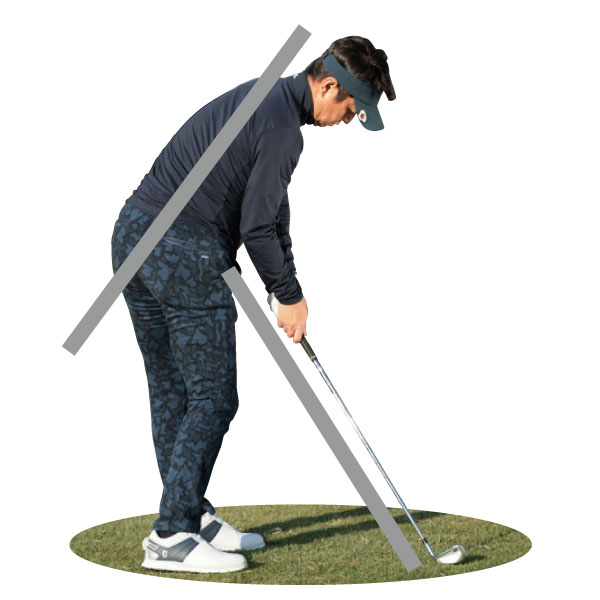 (中)そのまま前傾すればクラブを上げるべき方向が理解できる。