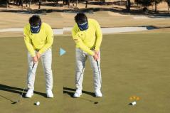 もう一つは、ボールにかかるフェースの圧力です。スクエアなインパクトに見えても、トゥ側の圧が強かったり、ヒール側の圧が強かったりする人がいます。2個のボールが目標方向に、ほぼ同じ距離でコロがるように練習することが大事。