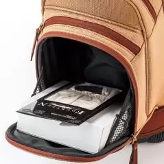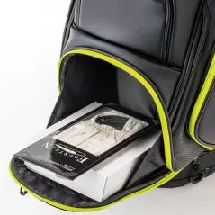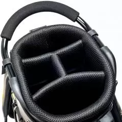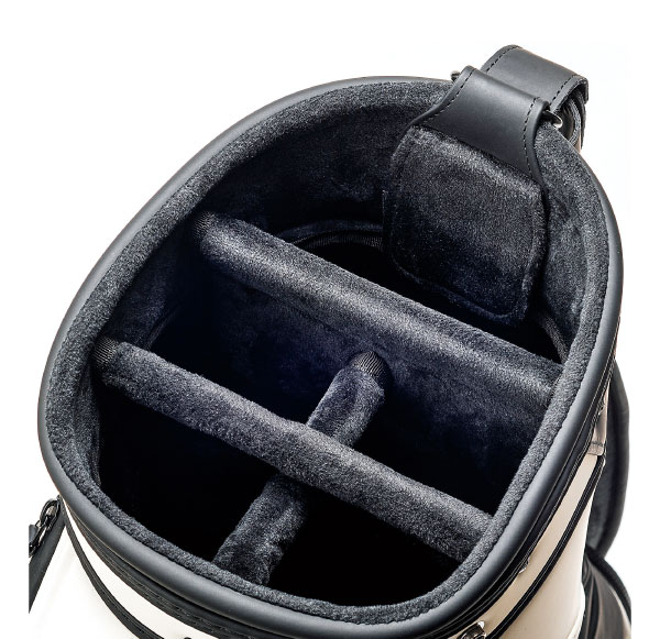 クラブ、ボール、シューズ、レインウェア、距離計測器などなど、ラウンド時の携行物が多いゴルファーにオススメの大口径タイプ。3点式ショルダーベルトも内蔵式にして、スッキリとした外観に仕上げられている。
