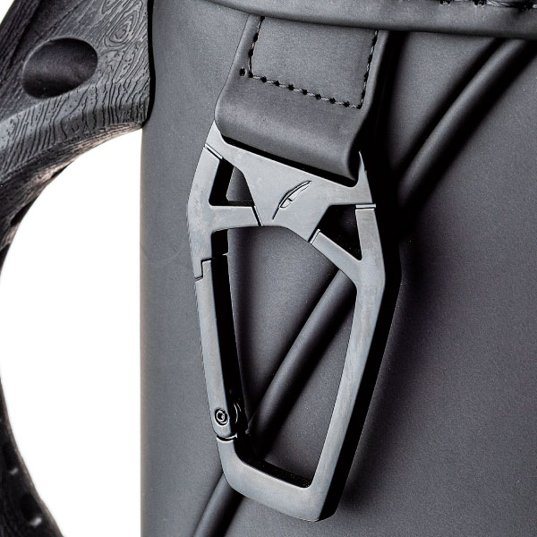 グローブ・タオルの取り付けに便利なカラビナパーツ。ロゴ入りのメタルパーツで質感も高い。