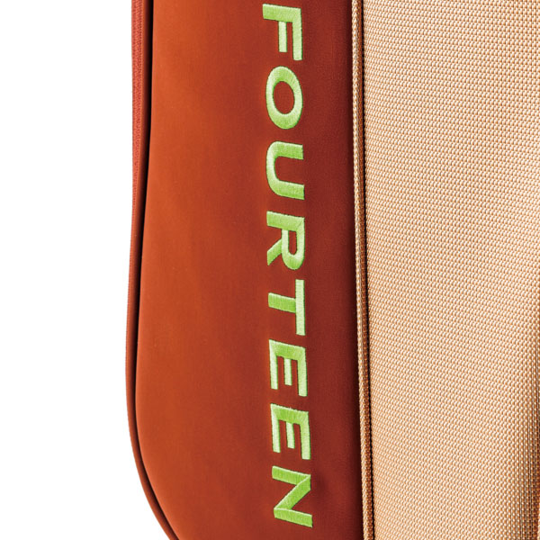 もちろん、同社のクラブ同様にシンプルなデザインでも、キャディバッグとしての機能性は充分以上。デザインだけではなく、使い勝手も両立しているところは、さすがフォーティーンと思える出来映えだ。