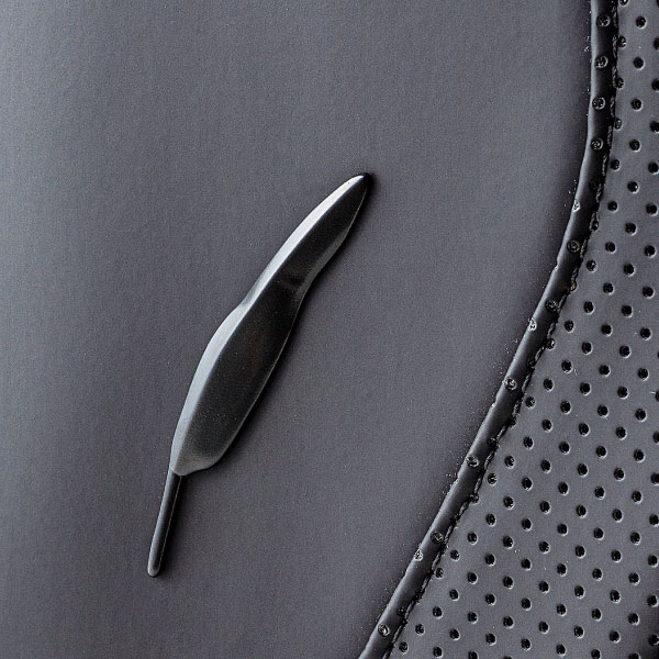 日本刀の目貫を思わせるメタリック調パーツをサイドに装着。