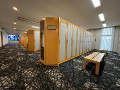 次は、ロッカールーム内にあるパウダールームをご紹介。ダイソンのドライヤーや、ReFaのシャワーヘッドを導入するなど、女性にはありがたいアイテムばかり。