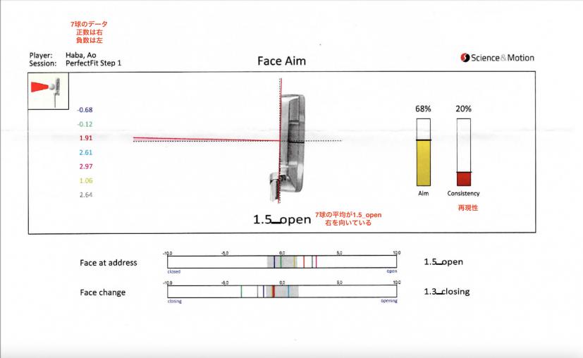 また、右の『Consistency』が再現性です。フェースの向きの再現性は20パーセントですね。でも、80パーセントは伸びしろということです!」