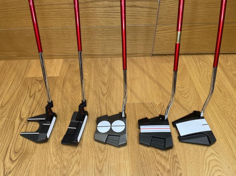 柳田さんがオススメしてくれた数種類のパターには、ヘッドの形状は違えど、どれもアライメントを合わせやすいラインが入っています。
