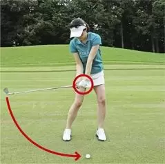 ダウンブローとハンドファースト、左足体重の3つはセットのようなもので、このうちのどれかが欠けてはボールをダウンブローに打てなくなります。アマチュアの方々に多く見られるミスはボールを上げたい意識から、すくい打ちになってしまうパターンです。